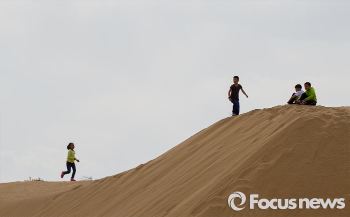 (다라더치/중국=포커스뉴스) 중국 내몽고 다라더치 쿠부치사막에서 만난 어린이들의 천진난만한 모습들. 누군가에게 사막은 땀과 고난의 땅이지만 동심에겐 훌륭한 놀이터가 된다. 모래밭 같은 삶 속에서 잠시 잊혀진 동심을 꺼내, 저 어린이들과 함께 달려본다.