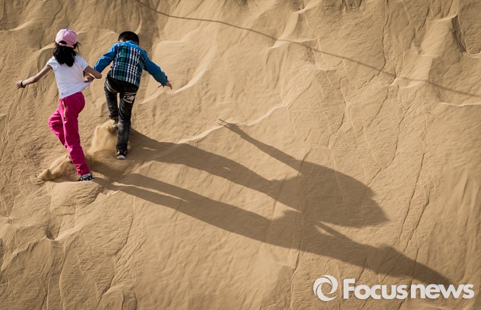 (다라더치/중국=포커스뉴스) 중국 내몽고 다라더치 쿠부치사막에서 만난 어린이들의 천진난만한 모습들. 누군가에게 사막은 땀과 고난의 땅이지만 동심에겐 훌륭한 놀이터가 된다. 모래밭 같은 삶 속에서 잠시 잊혀진 동심을 꺼내, 저 어린이들과 함께 달려본다.