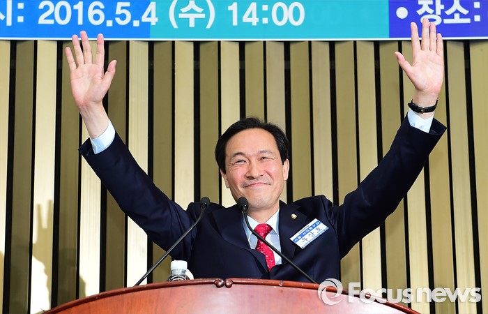 비례대표로 20대 국회 입성이 확정된 이재정 당선자는 민주사회를 위한 변호사모임 사무처장 출신으로 참여연대 공익법 센터 운영위원을 맡은 바 있다.4일 오후 서울 여의도 국회에서 더불어민주당 20대 국회 1기 원내대표 선출을 위한 당선자 총회에서 선출된 우상호 신임 원내대표가 소감을 전한 뒤 손을 들어 인사하고 있다. 2016.05.04 박동욱 기자