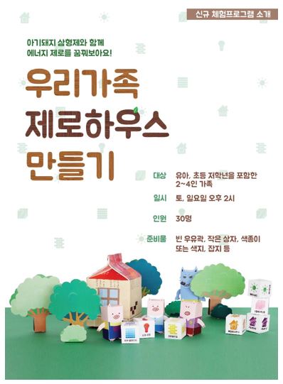 센터는 주변 환경시설을 둘러보는 '에코투어'와 가족 대상 주말프로그램 '행복한 에너지학교', '우리가족 제로하우스 만들기', '에너지티어링' 등을 진행하고 있다.