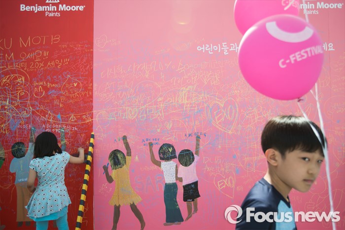 (서울=포커스뉴스) 어린이날을 맞아 5일 오후 서울 영동대로 일대에서 열린 '2016 C-페스티벌'에 참석한 어린이들이 대형 칠판에 낙서를 하며 즐거운 시간을 보내고 있다.