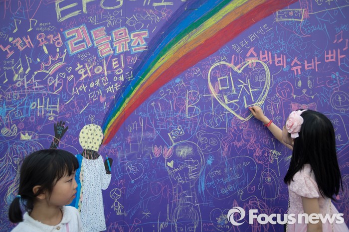 (서울=포커스뉴스) 어린이날을 맞아 5일 오후 서울 영동대로 일대에서 열린 '2016 C-페스티벌'에 참석한 어린이들이 대형 칠판에 낙서를 하며 즐거운 시간을 보내고 있다.