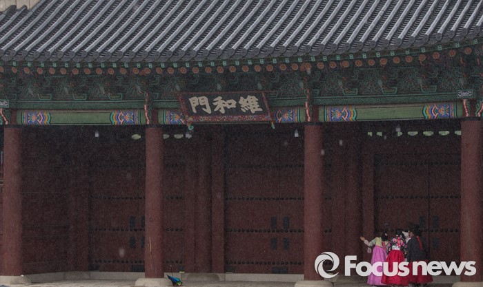 (서울=포커스뉴스) 임시공휴인인 6일 오후 서울 경복궁을 찾은 시민 및 관광객들이 궂은 날씨 속에 궐내 경치를 즐기고 있다.