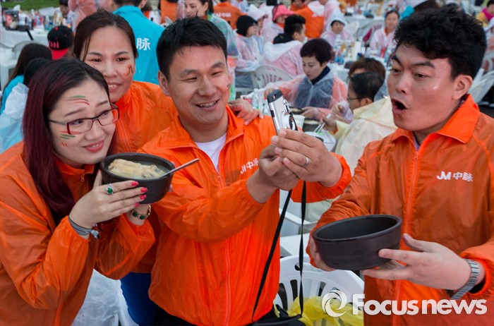 (서울=포커스뉴스) 6일 오후 서울 반포한강공원에서 중국 건강보조제품 회사 중마이그룹 직원들이 삼계탕 파티를 즐기고 있다. 이날 한강공원을 찾은 4천여명의 중마이그룹 직원들은 삼계탕 파티와 태양의 후예 OST 미니 콘서트 등을 즐겼다.