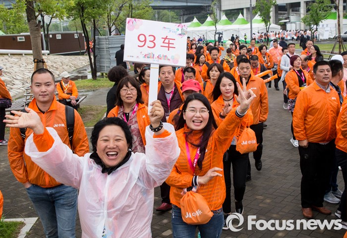 (서울=포커스뉴스) 6일 오후 서울 반포한강공원에서 열린 삼계탕 파티에 참석한 중국 건강보조제품 회사 중마이그룹 직원들이 행사장으로 향하고 있다. 이날 한강공원을 찾은 4천여명의 중마이그룹 직원들은 삼계탕 파티와 태양의 후예 OST 미니 콘서트 등을 즐겼다.