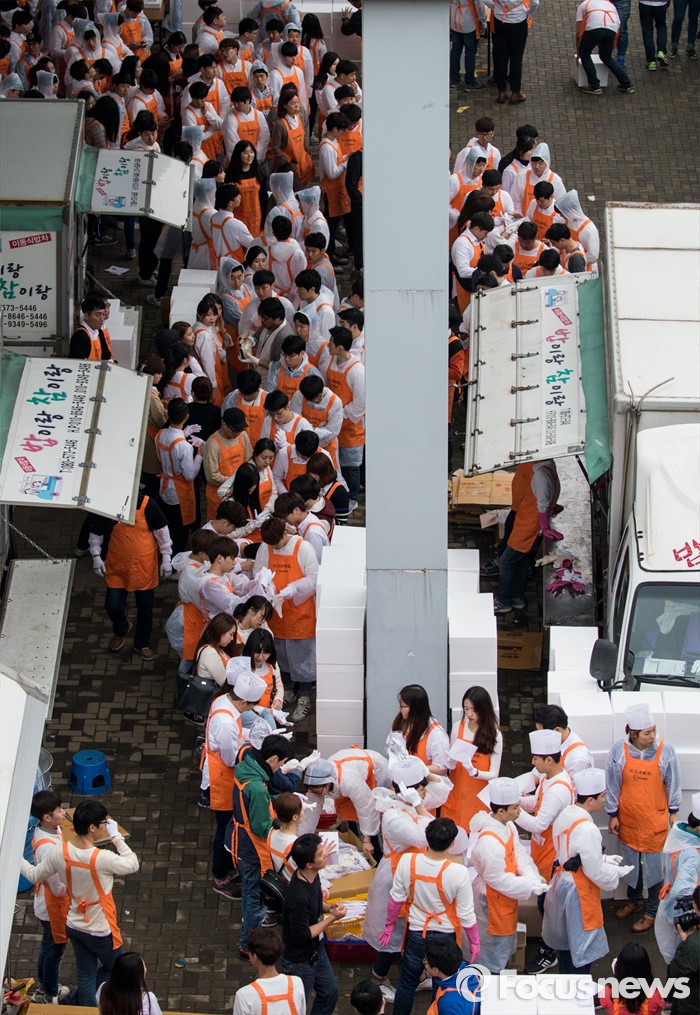 (서울=포커스뉴스) 6일 오후 서울 반포한강공원에서 열린 삼계탕 파티에서 행사 관계자들이 중국 건강보조제품 회사 중마이그룹 직원들에게 삼계탕을 나르고 있다. 이날 한강공원을 찾은 4천여명의 중마이그룹 직원들은 삼계탕 파티와 태양의 후예 OST 미니 콘서트 등을 즐겼다.