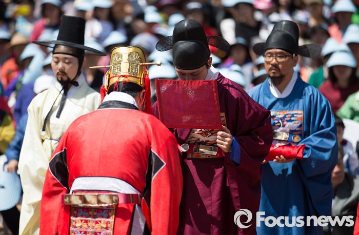 | △ 전통혼례 재현하는 '정선옹주 시집가는 날' 참가자들 |