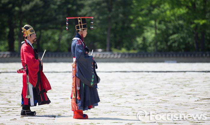 (서울=포커스뉴스) 7일 오후 서울 종묘 정전에서 열린 '조선의 세자빈 혼례를 고하다' 행사에서 참가자들이 묘현례를 재현하고 있다. 묘현례는 왕비나 세자빈이 왕실 혼례를 마친 후 조선왕조 역대 왕가 왕비의 신주가 모셔진 종묘를 알현하는 의례로서 조선시대 종묘에서 행해지는 국가의례 중 왕실 여성이 참여하는 유일한 행사이다.