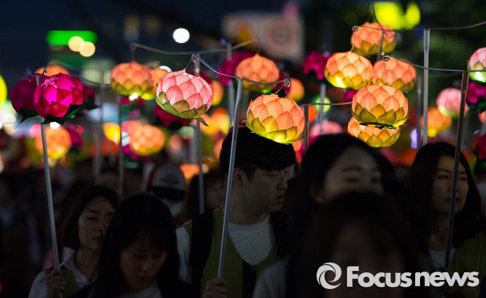 (서울=포커스뉴스) 부처님 오신날을 일주일 앞둔 7일 오후 서울 종로구 흥인지문부터 시작해 조계사까지 이어지는 화려한 연등 행렬이 펼쳐지고 있다.