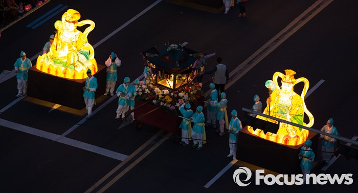 (서울=포커스뉴스) 부처님 오신날을 일주일 앞둔 7일 오후 서울 종로구 흥인지문부터 시작해 조계사까지 이어지는 화려한 연등 행렬이 펼쳐지고 있다.
