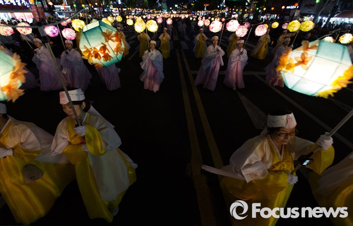 (서울=포커스뉴스) 부처님 오신날을 일주일 앞둔 7일 오후 서울 종로구 흥인지문부터 시작해 조계사까지 이어지는 화려한 연등 행렬이 펼쳐지고 있다.