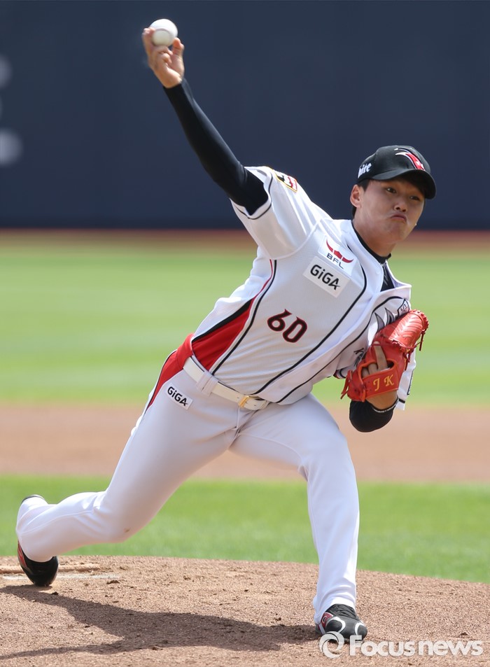 (서울=포커스뉴스) 8일 수원 kt위즈파크에서 열린 2016프로야구 한화-kt 경기에서 1회초 kt 선발투수 주권이 투구하고 있다.