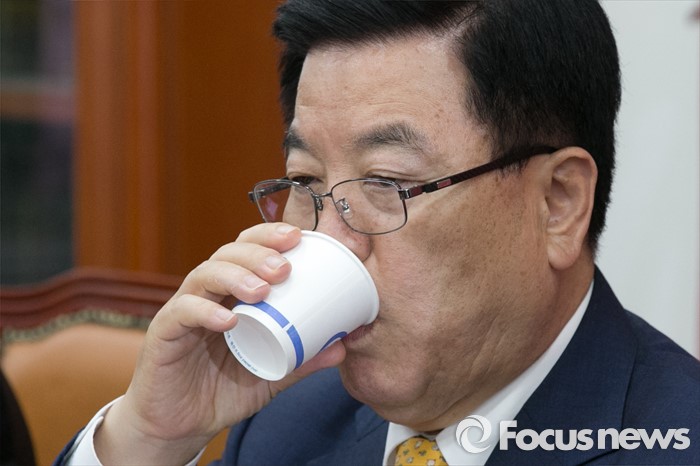 (서울=포커스뉴스) 김광림 새누리당 정책위의장이 8일 오후 서울 여의도 국회에서 열린 가습기살균제 피해 대책 당정협의에 참석해, 물을 마시고 있다.