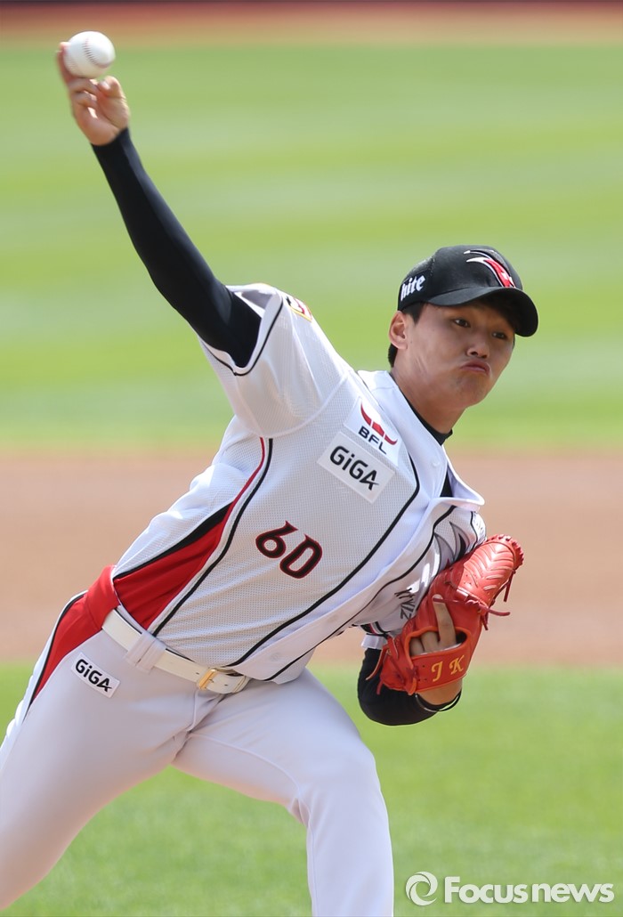 (서울=포커스뉴스) 8일 수원 kt위즈파크에서 열린 2016프로야구 한화-kt 경기에서 1회초 kt 선발투수 주권이 투구하고 있다.