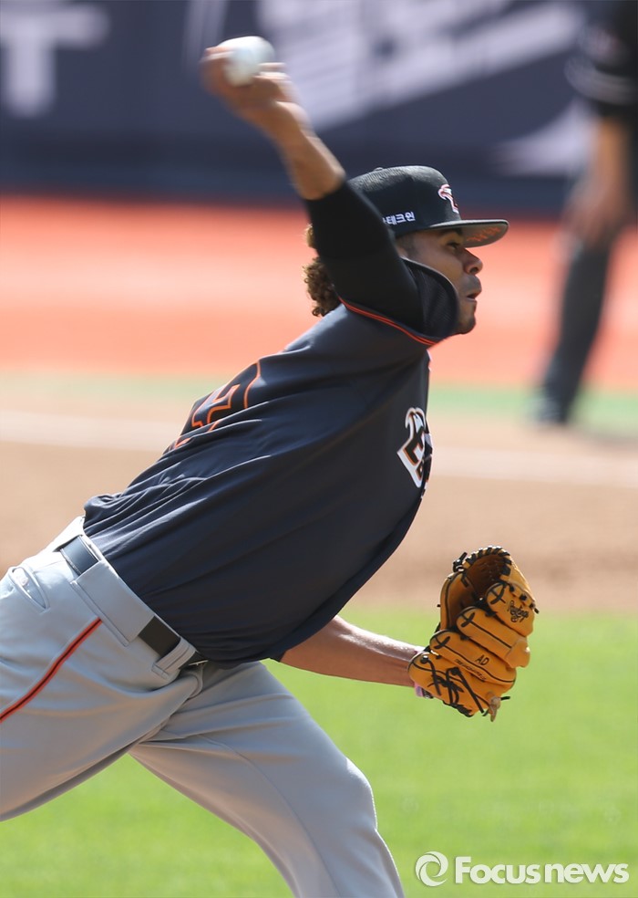 (서울=포커스뉴스) 8일 수원 kt위즈파크에서 열린 2016프로야구 한화-kt 경기에서 올 시즌 첫 등판한 한화 선발투수 로저스가 투구하고 있다.