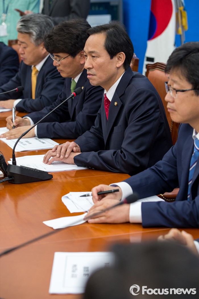 (서울=포커스뉴스) 우상호 더불어민주당 원내대표가 9일 오전 서울 여의도 국회에서 열린 신임 원내대표단 회의에서 모두발언 하고 있다.