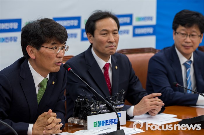 (서울=포커스뉴스) 박완주 더불어민주당 원내수석부대표가 9일 오전 서울 여의도 국회에서 열린 신임 원내대표단 회의에서 인사말 하고 있다.