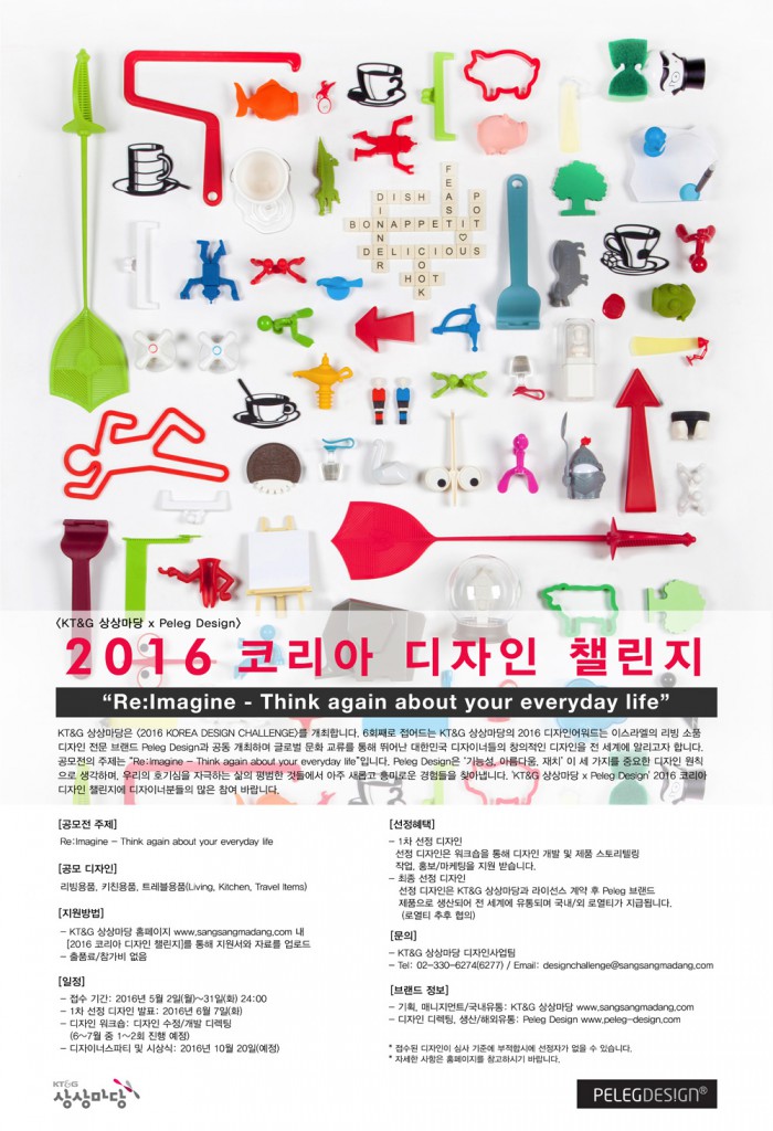 올해로 4년째를 맞는 '코리아 디자인 챌린지'는 한국의 제품 디자인 산업 활성화와 해외 시장 진출을 위한 지원 프로그램이다. 특히 올해는 이스라엘의 리빙 소품 디자인 전문 브랜드인 '펠레그(Peleg)'가 참여해 아이디어의 제품화부터 해외 유통까지 전 과정을 협업할 예정이다.