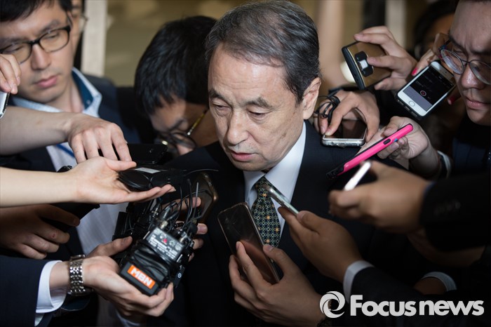 (서울=포커스뉴스) 가습기 살균제 사망사건 관련 조사를 받기 위해 신현우 전 옥시 대표가 9일 오전 서울 서초구 서울중앙지방검찰청으로 출석해 취재진의 질문을 받고 있다.