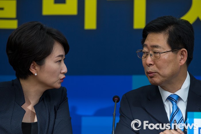 (서울=포커스뉴스) 양승조(오른쪽) 더불어민주당 가습기살균제대책특위 위원장과 이언주 간사가 9일 오전 서울 여의도 국회에서 열린 '가습기살균제 대책특위 1차회의'에 참석해 대화를 나누고 있다.