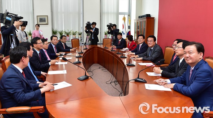 | △ 마주 앉은 與 신임 원내대표단 |