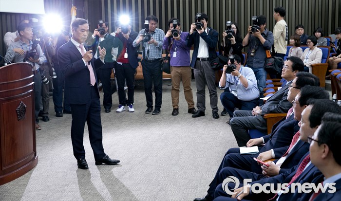 (서울=포커스뉴스) 9일 오후 서울 여의도 국회에서 열린 새누리당 20대 총선 당선자 총회에 참석한 정진석 원내대표 등 당선인 및 의원들이 노무현 정부 청와대 정책실장을 지낸 김병준 국민대 교수의 특강을 듣고 있다.