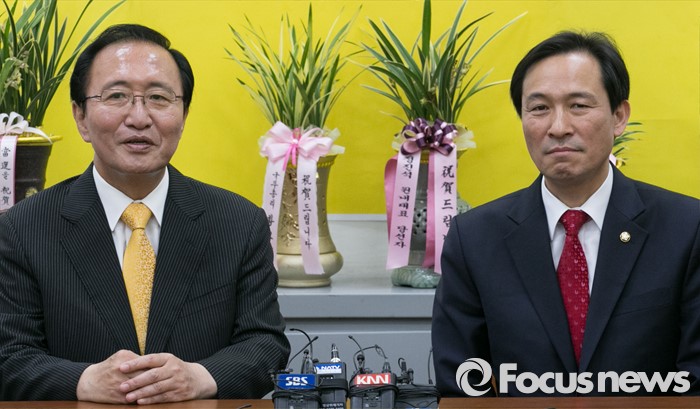 노 원내대표는 "(우 원내대표가) 그래도 다수당 원내대표인데 내가 찾아가서 인사해야 하는데 누추한 곳까지 왔다"며 20대 국회 제1당의 원내대표를 맞이했다.