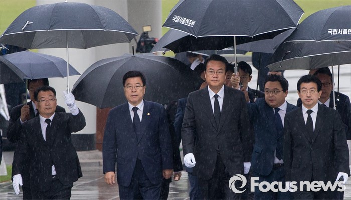 (서울=포커스뉴스) 10일 오전 서울 동작구 국립현충원을 찾은 정진석 새누리당 신임 원내대표와 김광림 신임 정책위의장이 분향단으로 발걸음을 옮기고 있다.
