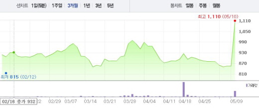 납입일은 6월 1일이고 신주 상장예정일은 같은 달 17일이다.주가흐름<사진출처=네이버 캡쳐>