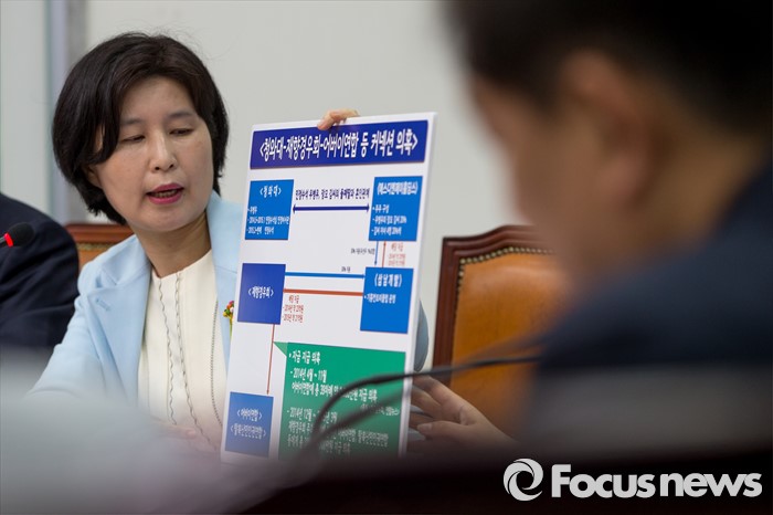(서울=포커스뉴스) 백혜련 더불어민주당 당선자가 10일 오전 서울 여의도 국회에서 열린 어버이연합 등 보수단체 불법자금지원 의혹규명 진상조사 TF 3차 회의에 참석해 청와대와 보수단체 커넥션 의혹을 설명하고 있다.
