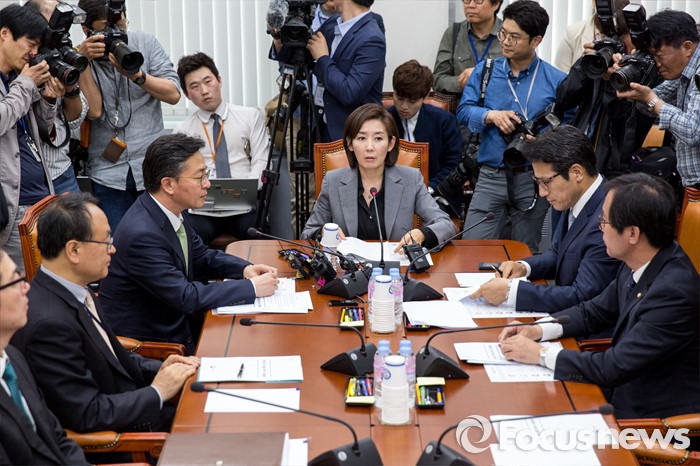 (서울=포커스뉴스) 나경원 국회 외교통일위원장이 10일 오후 서울 여의도 국회에서 홍용표 통일부 장관에게 북한 노동당 관련 현안보고에 앞서 모두발언 하고 있다.