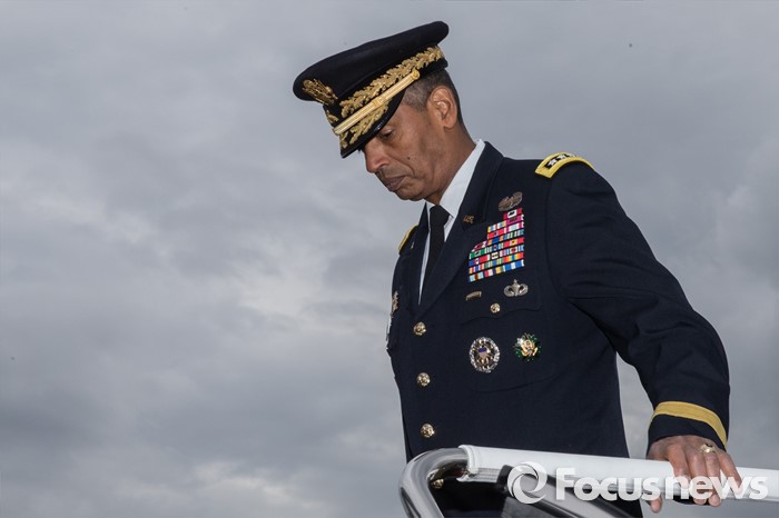 (서울=포커스뉴스) 10일 오후 서울 용산구 합동참모본부 대연병장에서 열린 환영 의장행사에서 빈센트 브룩스 신임 한·미연합사령관 겸 주한미군사령관과 이순진 합참의장이 의장대 사열을 마치고 차량에서 내려오고 있다.