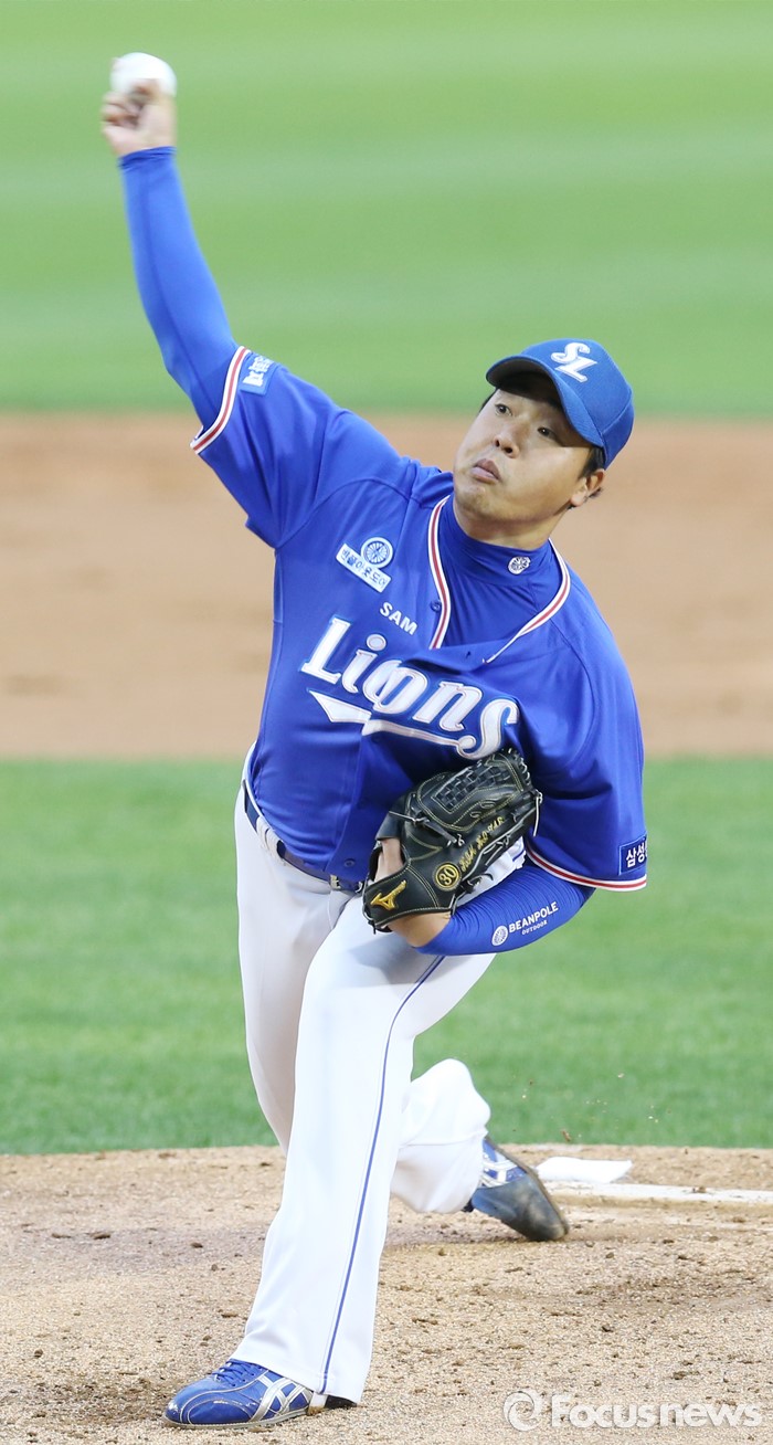 △ 투구하는 삼성 선발투수 김기태