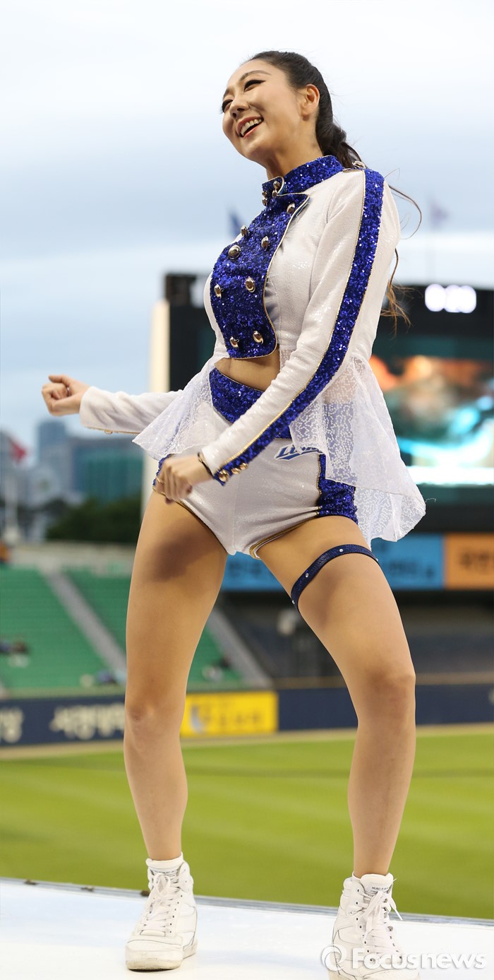 (서울=포커스뉴스) 10일 서울 잠실구장에서 열린 2016 프로야구 삼성-LG 경기에서 삼성 치어리더가 승리를 부르는 손짓으로 관중들의 응원을 유도하고 있다.