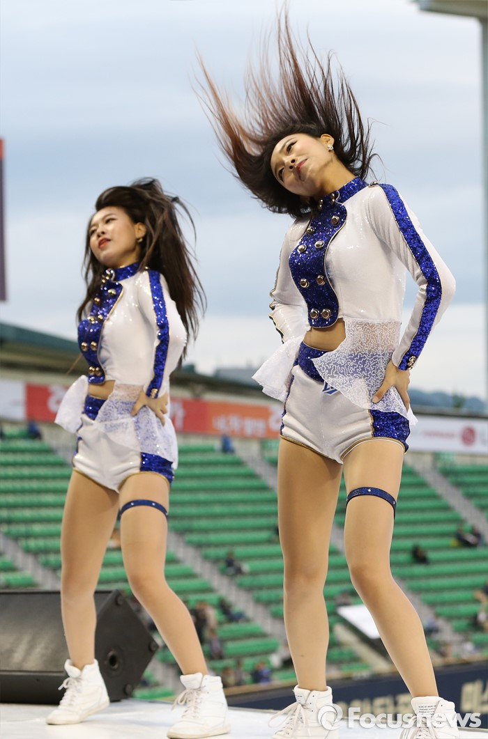 (서울=포커스뉴스) 10일 서울 잠실구장에서 열린 2016 프로야구 삼성-LG 경기에서 삼성 치어리더가 승리를 부르는 손짓으로 관중들의 응원을 유도하고 있다.