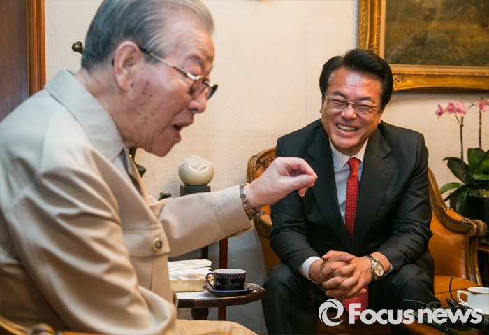 (서울=포커스뉴스) 김종필 전 국무총리가 10일 정진석 새누리당 원내대표를 향해 "최선이 아니라도 차선을 골라서 타협해서 국민이 안정되게 해야 정치다"라고 말하며 '협치'를 강조했다.