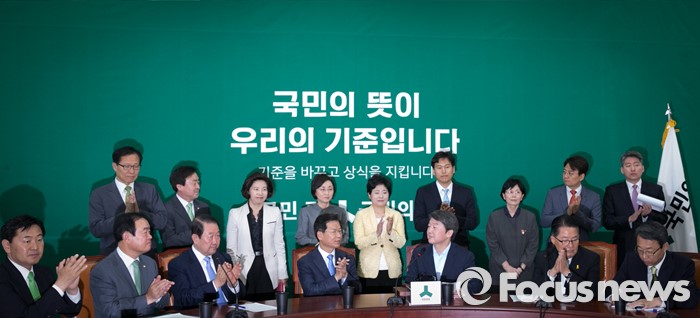 (서울=포커스뉴스) 11일 오전 서울 여의도 국회에서 열린 국민의당 최고위원회의에 참석한 안철수(앞줄 오른쪽 세번째) 상임공동대표가 신임 당직자들을 소개하고 있다.