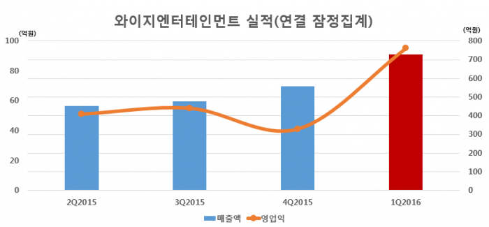 (서울=포커스뉴스) 와이지엔터테인먼트가 1분기 영업익 94억원을 기록했다. 시장 예상치인 77억원을 웃도는 수치다.