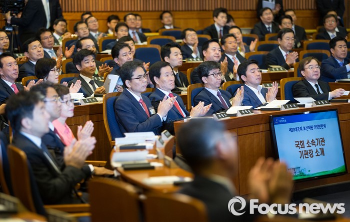 (서울=포커스뉴스) 11일 오전 서울 여의도 국회 헌정기념관에서 20대 국회 초선의원 의정연찬회에 참석한 당선인들이 박수치고 있다.