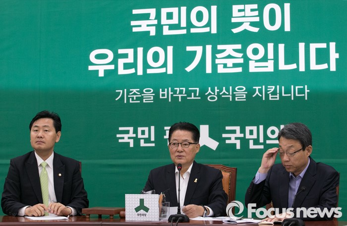 (서울=포커스뉴스) 12일 오전 서울 여의도 국회에서 열린 국민의당 원내정책조정회의에 참석한 박지원(가운데) 원내대표가 모두발언을 하고 있다.