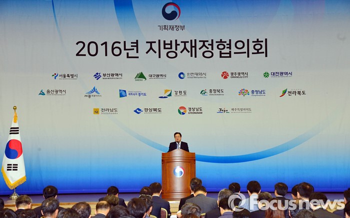 (세종=포커스뉴스) 박춘섭 기획재정부 예산실장이 12일 오전 세종시정부세종청사 컨센션센터에서 열린 2016년 지방재정협의회에 참석해 인사말을 하고 있다. <사진제공=기획재정부>