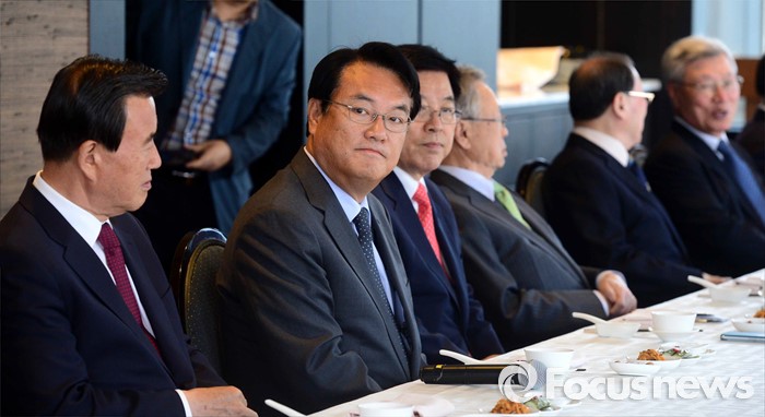 (서울=포커스뉴스) 정진석(왼쪽 두번째) 새누리당 원내대표, 김광림(왼쪽 세번째) 정책위의장 등이 12일 오후 서울 여의도 한 중식당에서 상임고문단과 오찬을 하고 있다.