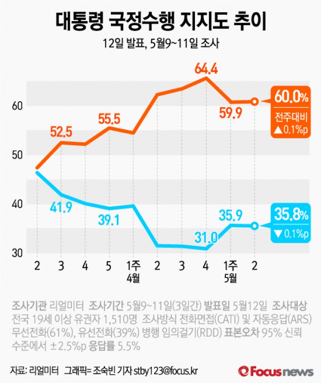 | △ [그래픽] 대통령 국정수행 지지도 추이 |