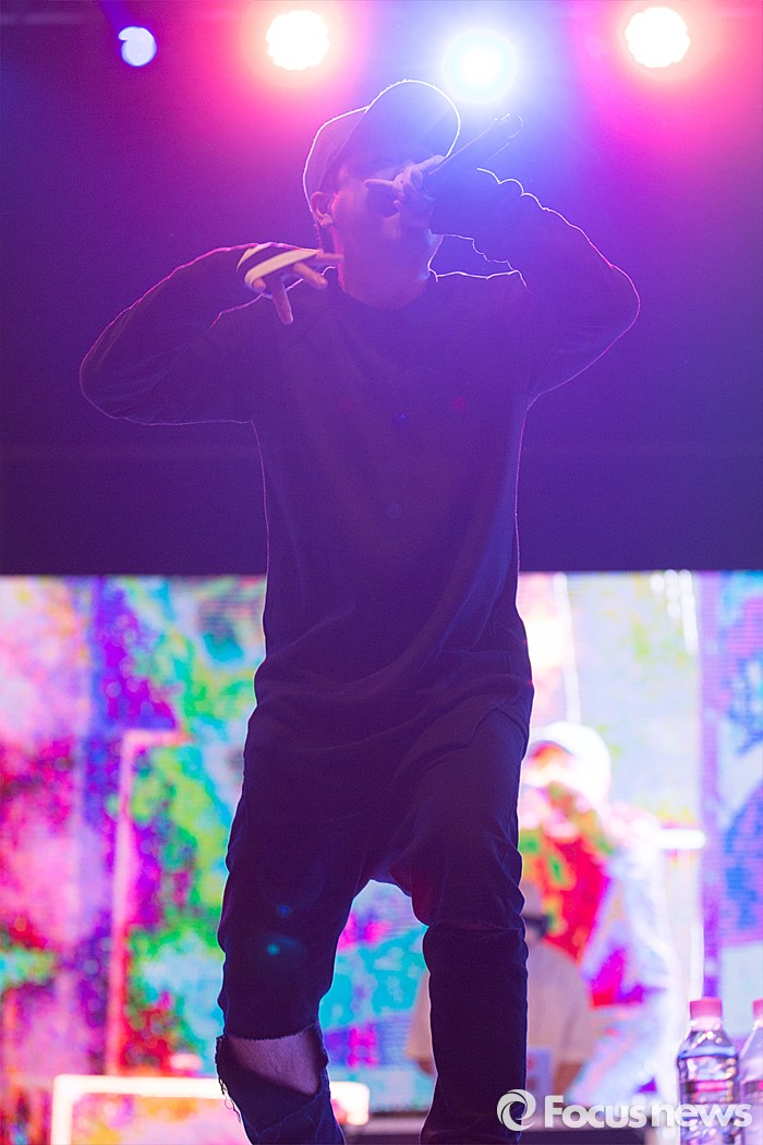 (서울=포커스뉴스) 12일 오후 서울 광진구 건국대학교 대운동장에서 열린 '2016 건국대학교 대동제'에서 그룹 긱스 멤버 릴보이가 무대를 선보이고 있다.