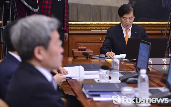 (서울=포커스뉴스) 이주열 한국은행 총재가 13일 오전 서울 중구 남대문로 한국은행에서 열린 금융통화위원회에 참석해 회의 시작을 기다리고 있다.