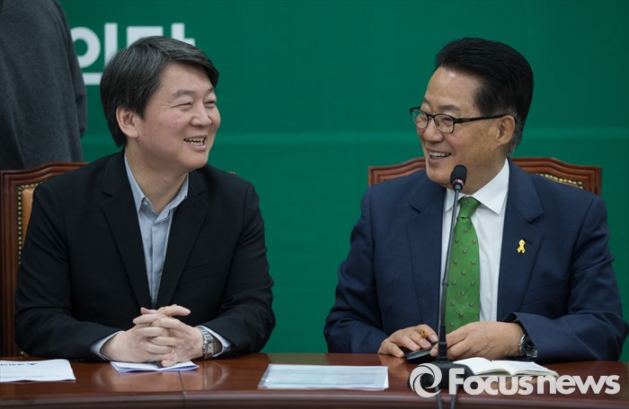 (서울=포커스뉴스) 안철수(왼쪽) 상임공동대표와 박지원 원내대표가 13일 오전 서울 여의도 국회에서 열린 최고위원회의에 참석해 대화를 나누고 있다.