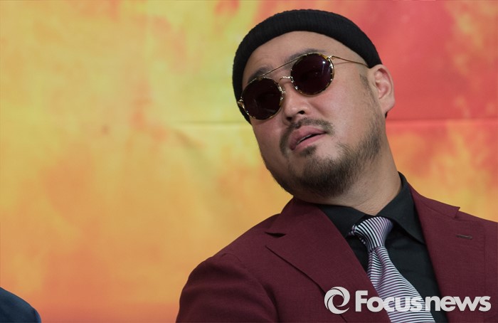 (서울=포커스뉴스) 13일 오전 서울 영등포구 타임스퀘어 아모리스홀에서 열린 Mnet '쇼미더머니5' 제작발표회에 참석한 래퍼 길이 문을 받고 있다.