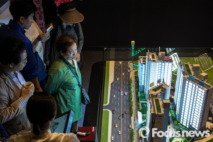 (서울=포커스뉴스) 이달 6만 8천여 가구라는 물량이 쏟아져 5월 분양전쟁이 예상되는 가운데 서울 용산구 효창동 KCC 스위첸 견본주택이 방문한 시민들로 붐비고 있다.