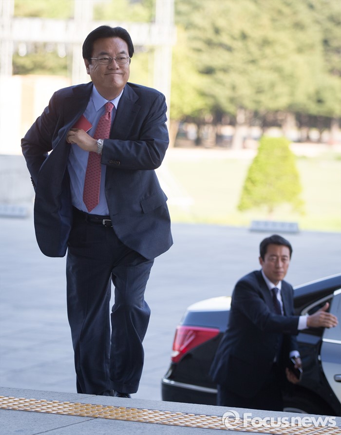 (서울=포커스뉴스) '박근혜 대통령과 여야 3당 원내지도부 회동'을 다녀 온 정진석 새누리당 원내대표가 회동 결과 브리핑을 하기 위해 13일 오후 서울 여의도 국회 본청을 들어서고 있다.