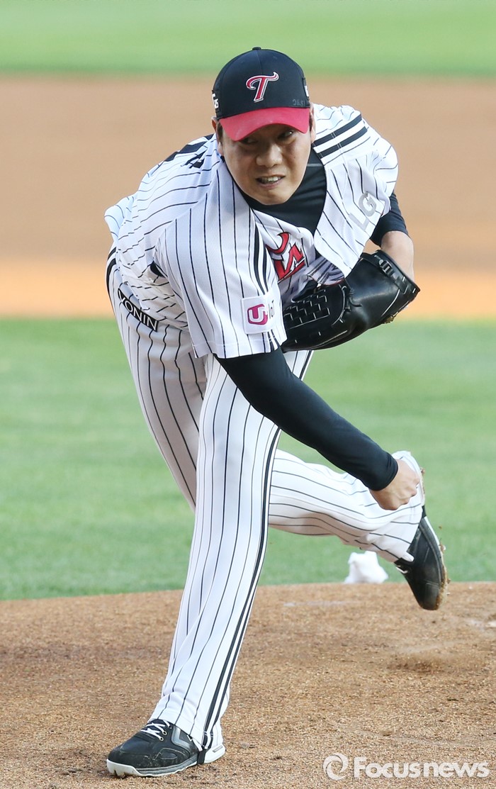 (서울=포커스뉴스) 13일 서울 잠실구장에서 열린 2016 프로야구 SK-LG 경기에서 1회초 LG 선발투수 류제국이 투구하고 있다.